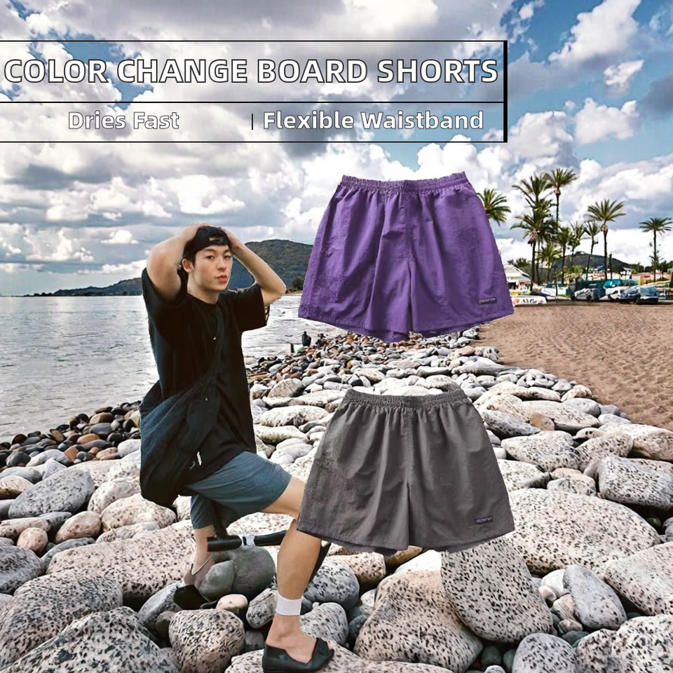 กางเกงขาสั้นชายหาดเอวกลางลำลองสำหรับผู้ชาย ระบายอากาศได้ดี เป็นมิตรกับสิ่งแวดล้อม เอวยางยืด