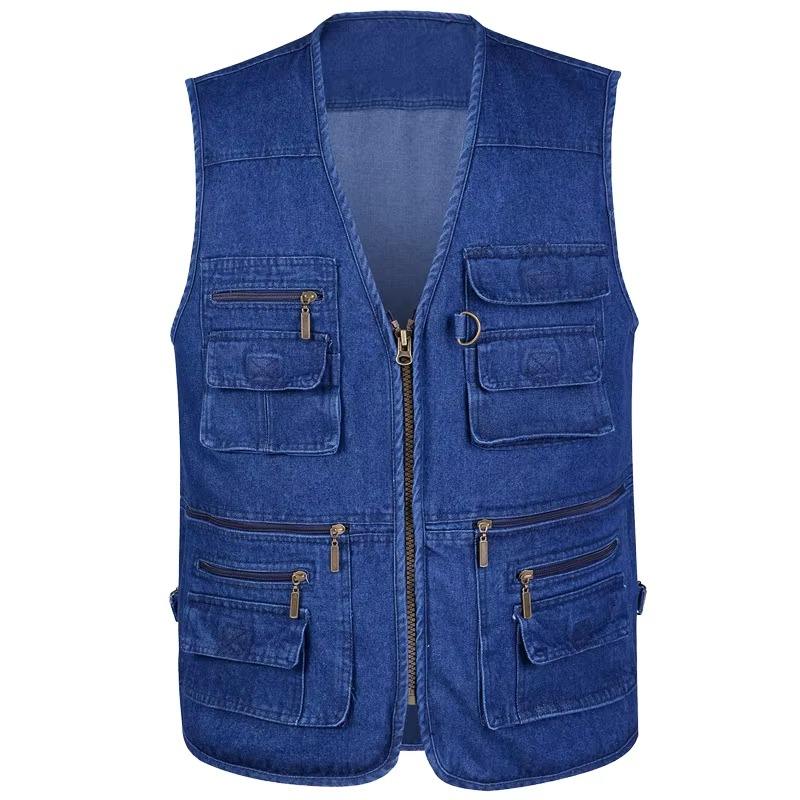เสื้อกั๊กผู้ชายลำลองหลายกระเป๋า ระบายอากาศได้ดี ลายการ์ตูน คอวี ปิดซิป ผ้าฝ้าย 65% เหมาะสำหรับตกปลาและนักข่าว