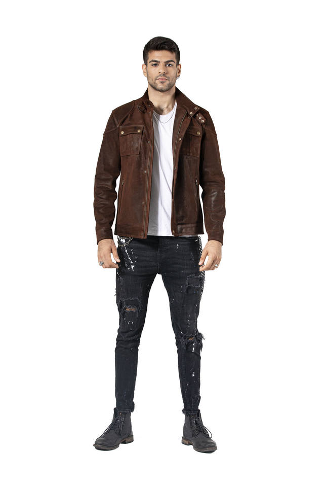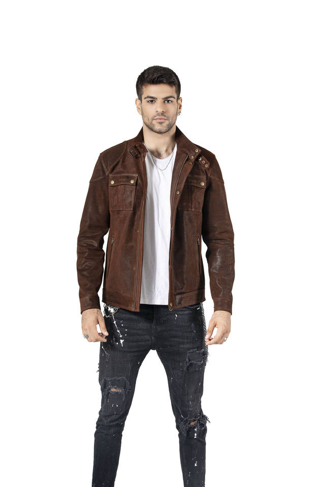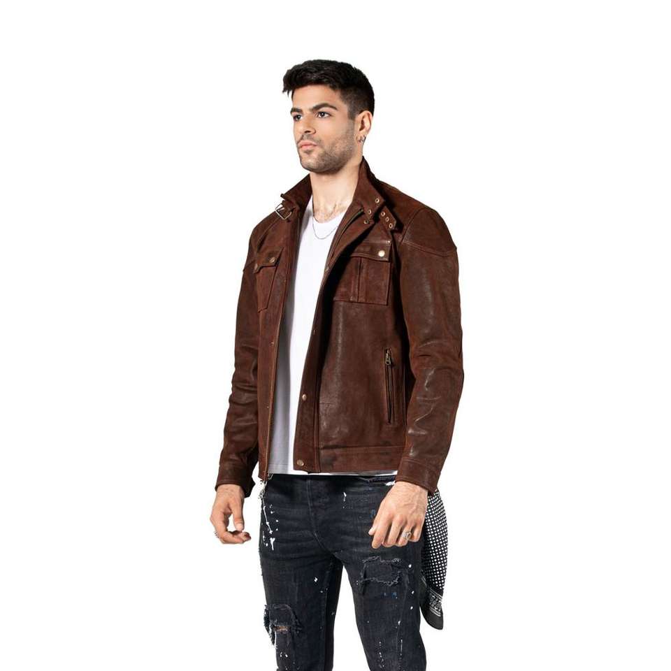 เสื้อแจ็คเก็ต Nappa หนังแท้สำหรับผู้ชาย, เสื้อแจ็กเก็ตแบบหนาเนื้อผ้าระบายอากาศระบายอากาศปรับแต่งโลโก้ได้สำหรับฤดูใบไม้ผลิฤดูหนาว
