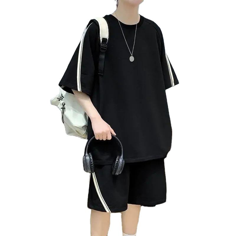 เครื่องแต่งกายเทรนด์ผ้าไนลอนลำลองของผู้ชายเสื้อยืดพิมพ์ลายแบรนด์ดั้งเดิมชุดกางเกงขาสั้นและสวมใส่สบาย