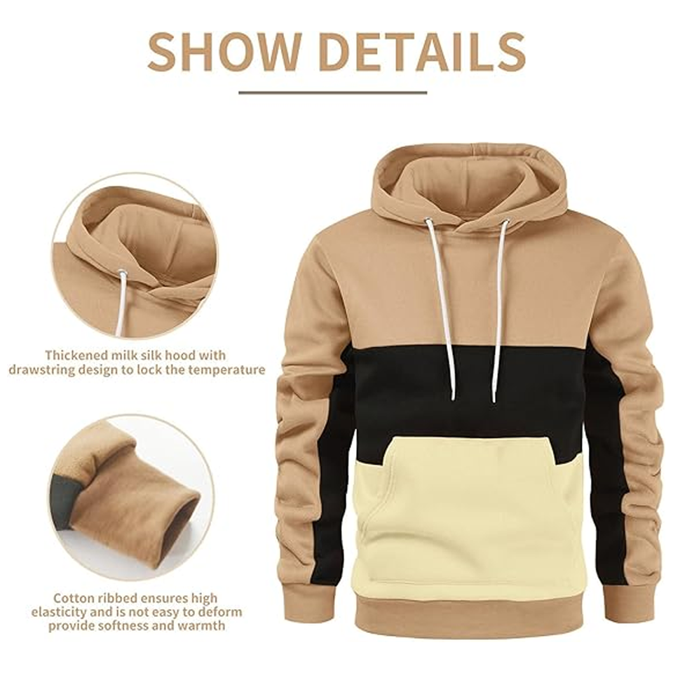 เสื้อกันหนาวสวมหัวลำลองสำหรับผู้ชายกลางแจ้งมีฮู้ดขนแกะพร้อมกระเป๋าปักลายดิจิตอลสีบล็อกคอลเลกชันฤดูใบไม้ผลิ