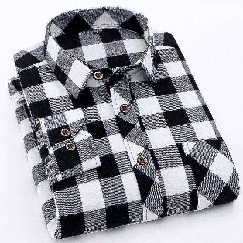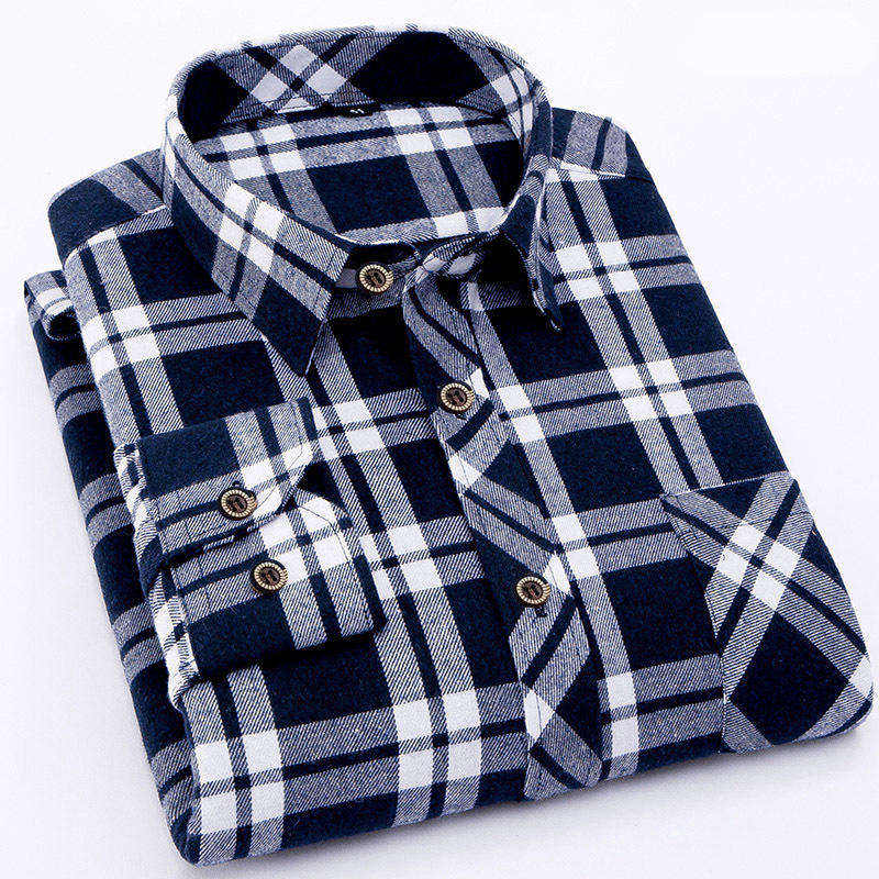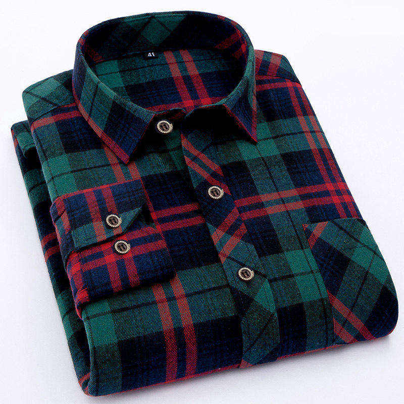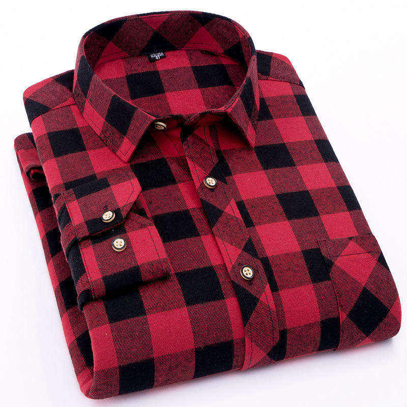 เสื้อเชิ้ตผ้าสักหลาดลายสก็อตสำหรับผู้ชาย สไตล์ลำลอง ทนทาน เหมาะสำหรับทำงานหรือวันหยุดสุดสัปดาห์ รับสกรีนโลโก้และออกแบบตามสั่ง