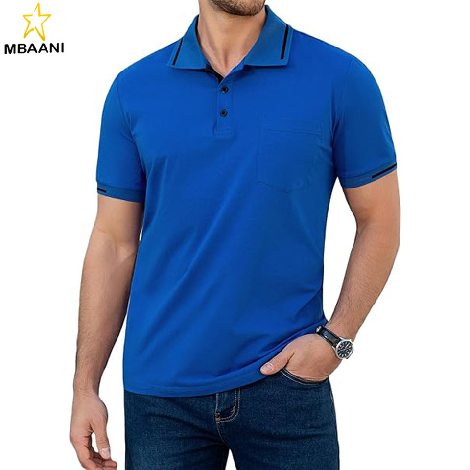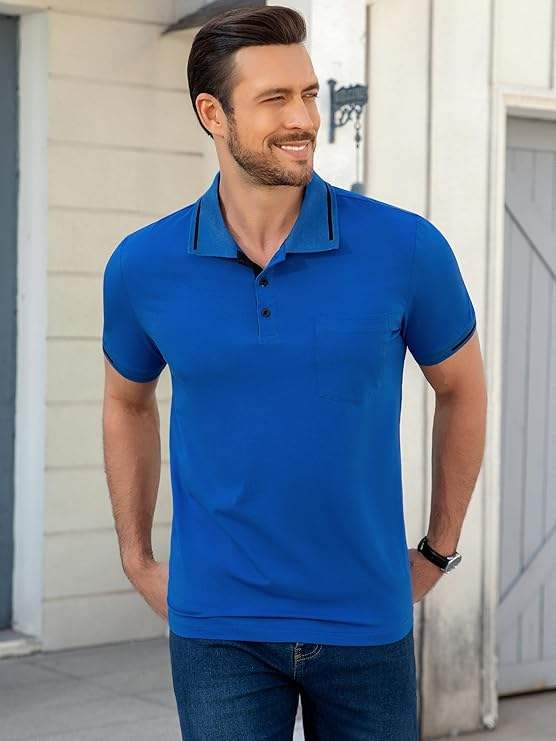 เสื้อโปโลลำลองผู้ชาย แขนสั้น ใส่ได้ในฤดูร้อน มีกระดุมและกระเป๋าเสื้อ น้ำหนักเบา เหมาะสำหรับเล่นกอล์ฟ