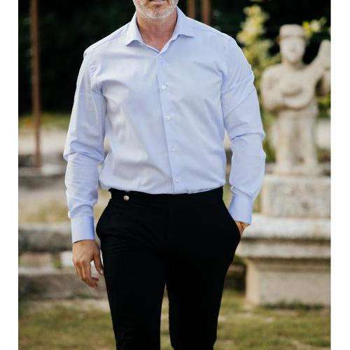 เสื้อธุรกิจแขนสั้นผู้ชายคลาสสิกผ้าลินิน100% ผ้าลินินผ้าแชมเบรย์สไตล์จีนทนทาน