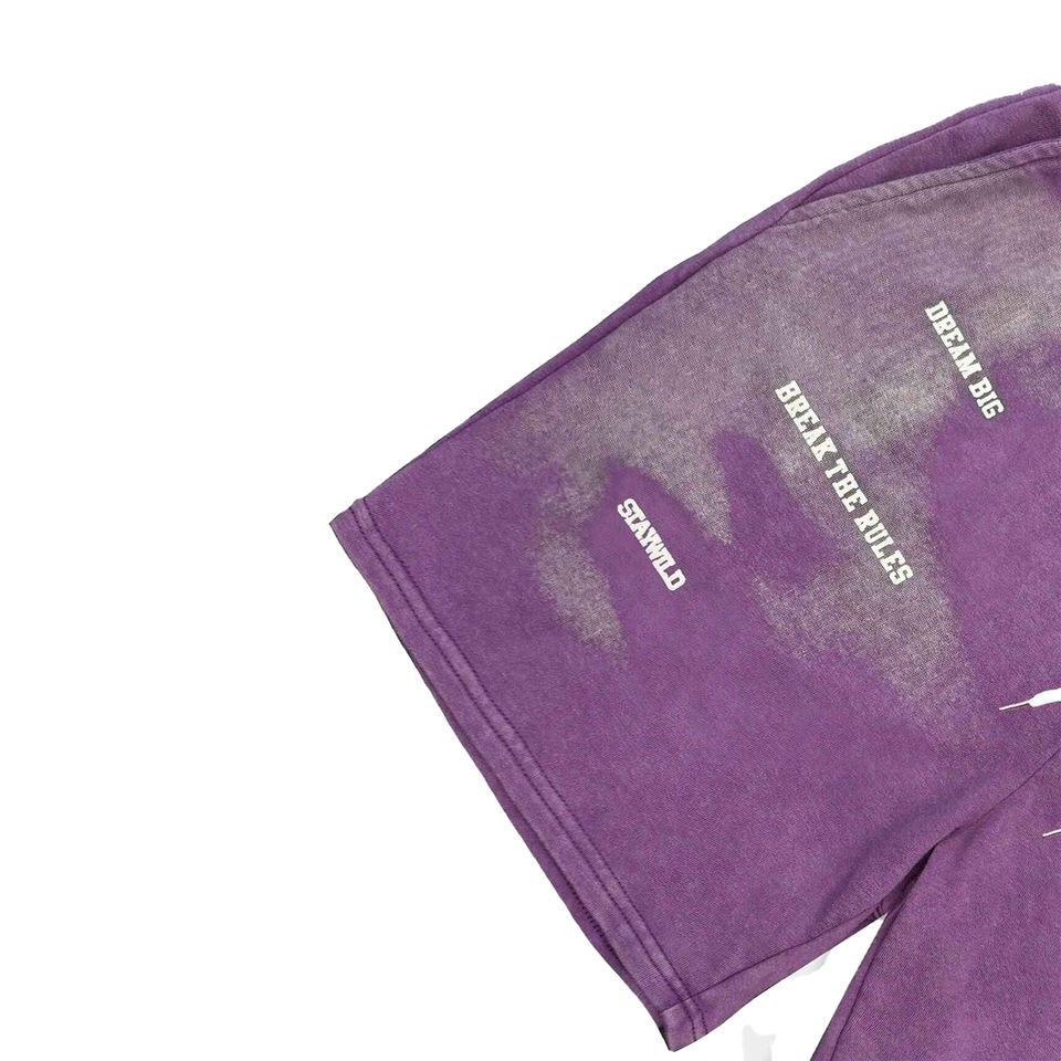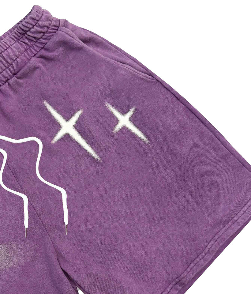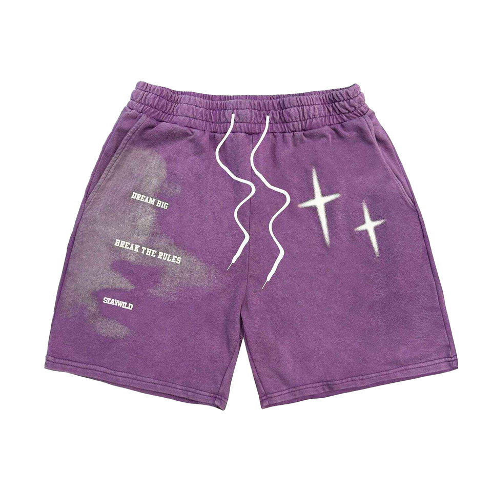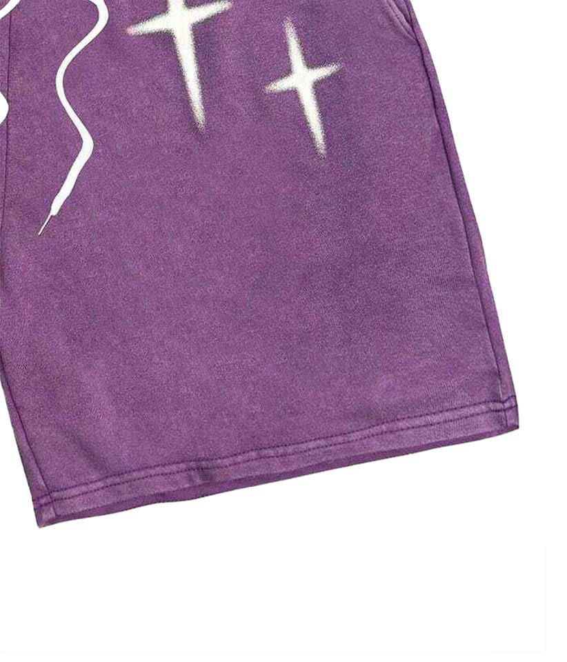 กางเกงขาสั้นผ้าฝ้ายถักเอวยางยืดพิมพ์ลายดวงดาวสำหรับผู้ชายกางเกงซักลายดาวสีม่วงแบบลำลองออกแบบได้ตามต้องการสไตล์สตรีทสูง