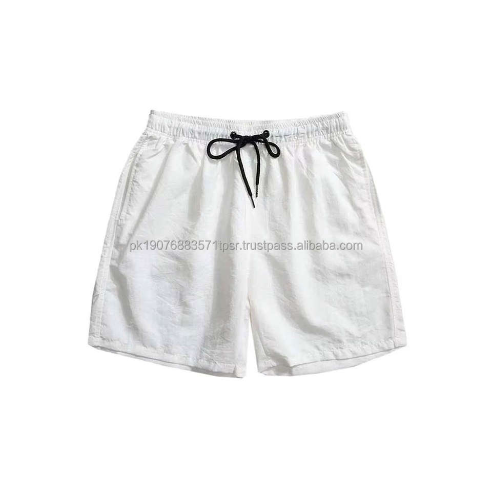 กางเกงชายหาดแห้งเร็วสไตล์ลำลองสำหรับผู้ชาย กางเกงวิ่งเอวกลางทรงสปอร์ตพร้อมเชือกผูก กางเกงขาสั้นผ้าตาข่ายทอเนื้อผ้าทึบ