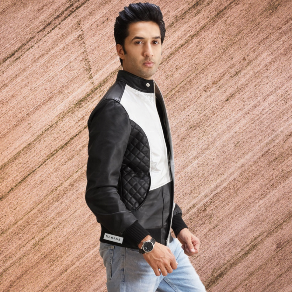 แจ็กเก็ตบอมเบอร์หนังแท้ผู้ชาย, แจ็คเก็ตแฟชั่นหนังแขนยาวมีซิปสำหรับผู้ชาย