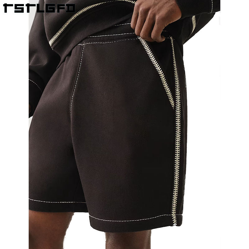 Men's Casual Shorts High Quality 100% Cotton Mid Elastic Waist Breathable Sun Faded Acid Washed Fabric Heavyweight Contrast