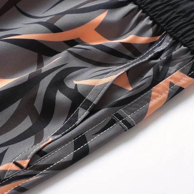 กางเกงขาสั้นชายหาดของผู้ชายกางเกงขาสั้นผ้าทอเอวกลางพร้อมเชือกยางยืด