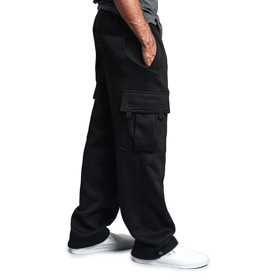 กางเกงคาร์โก้ขายาวลำลอง6กระเป๋าของผู้ชายกางเกงผ้าคอตตอนผ้าฟลีซเอวปานกลางแบบตรงย้อมสีเรียบหลากสี