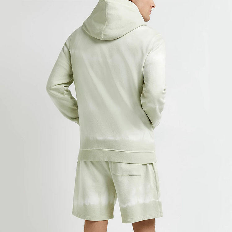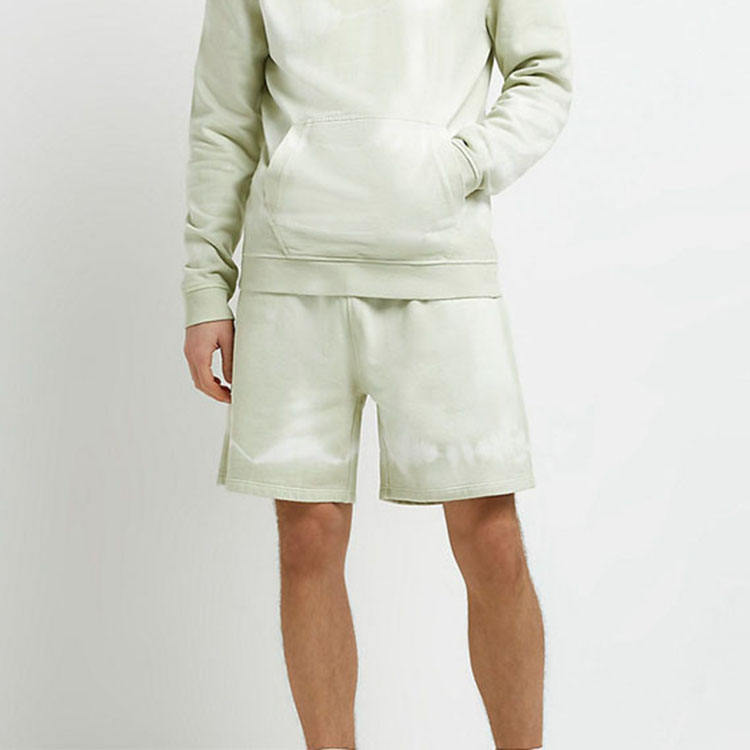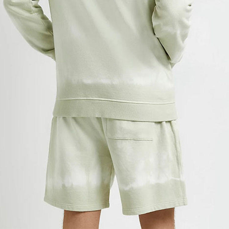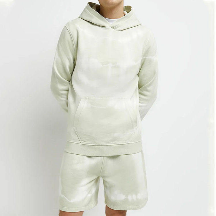 ชุดเซ็ตเสื้อฮู้ดดี้ผ้าฝ้ายทรงสลิมฟิตลำลองสำหรับผู้ชายและกางเกงขาสั้น ลายมัดย้อม มีกระเป๋า รับทำโลโก้ตามสั่ง ชุดลำลองฤดูร้อน รับผลิตแบบ OEM ODM ขายส่ง
