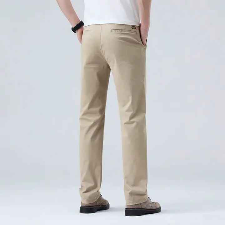 กางเกงเดรสสลิมฟิตลำลองสำหรับผู้ชาย, กางเกงน้ำหนักเบาระบายอากาศได้ดีเป็นมิตรกับสิ่งแวดล้อมผ้าคอตตอน100% แบนเอวสูงด้านหน้าเรียบ