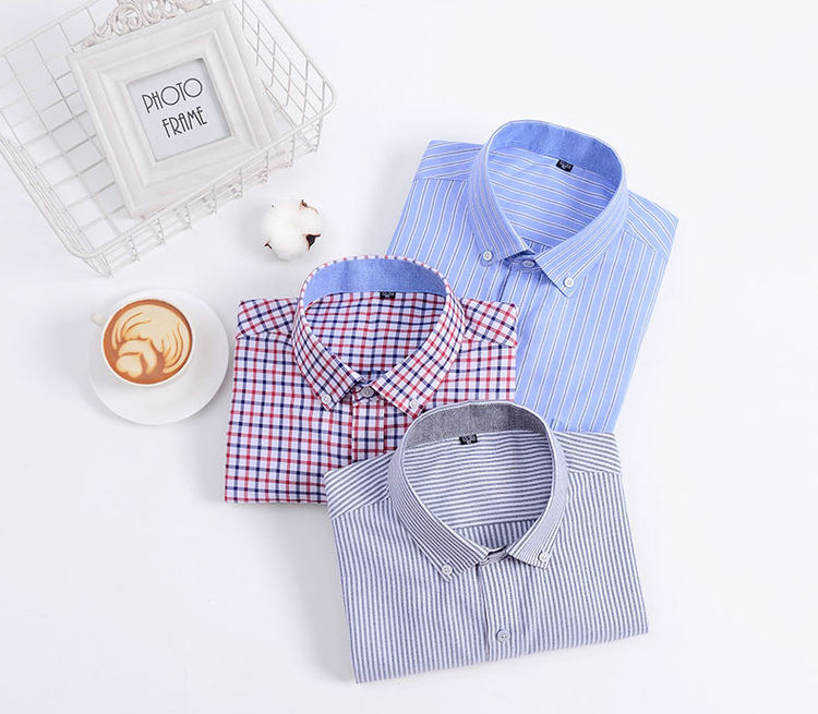 Men's Casual Slim Fit Stand Oxford Shirt 100% Cotton Non-Iron Style Wrinkle Resistant Herringbone Plaid Striped Long Sleeve ODM