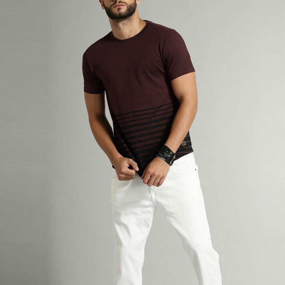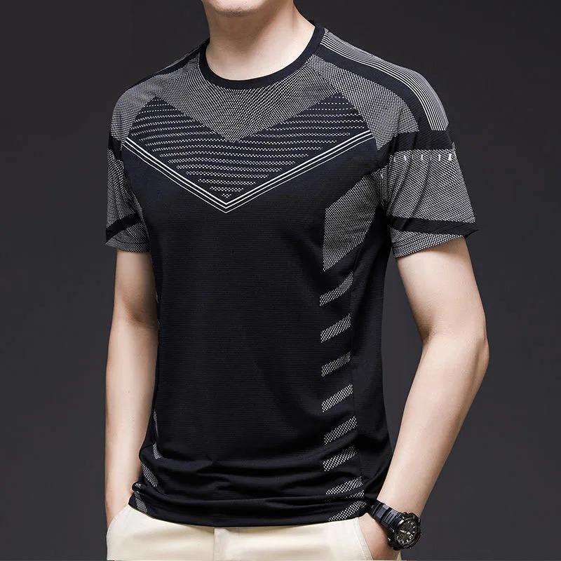 เสื้อยืดแขนสั้นทรงสลิมฟิตลำลองสำหรับผู้ชายพิมพ์ลายทางการซิลิกอนคุณภาพสูงมีลายปัก