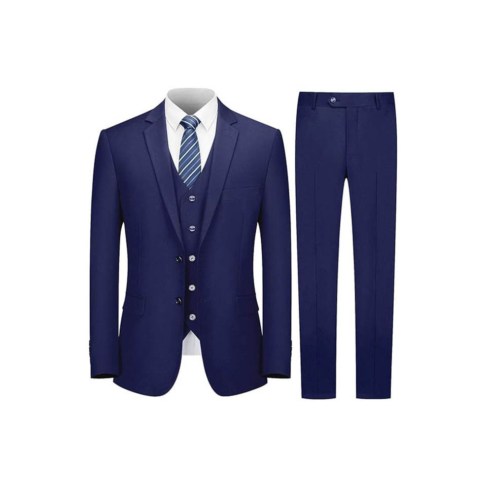 ชุดสูทลำลองผู้ชายทรงเข้ารูป กระดุมเดี่ยว สีพื้น สำหรับงานแต่งงานหรือธุรกิจ 2 ชิ้น ผ้าขนสัตว์ จีบระบาย