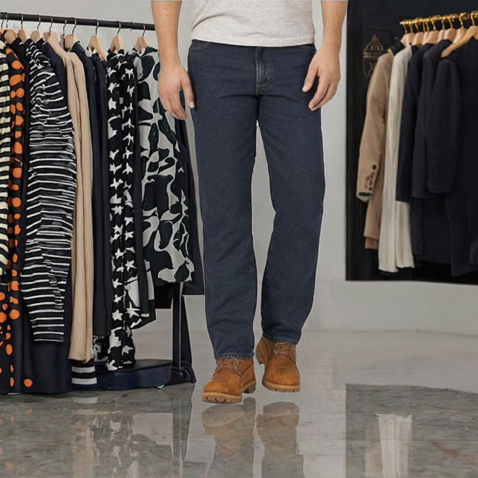 กางเกงยีนส์สีน้ำเงินขาตรงสลิมลำลองสำหรับผู้ชาย, กางเกงยีนส์ผ้าฝ้าย100% กันน้ำซักได้รุ่นเอวปานกลางไซส์พิเศษ