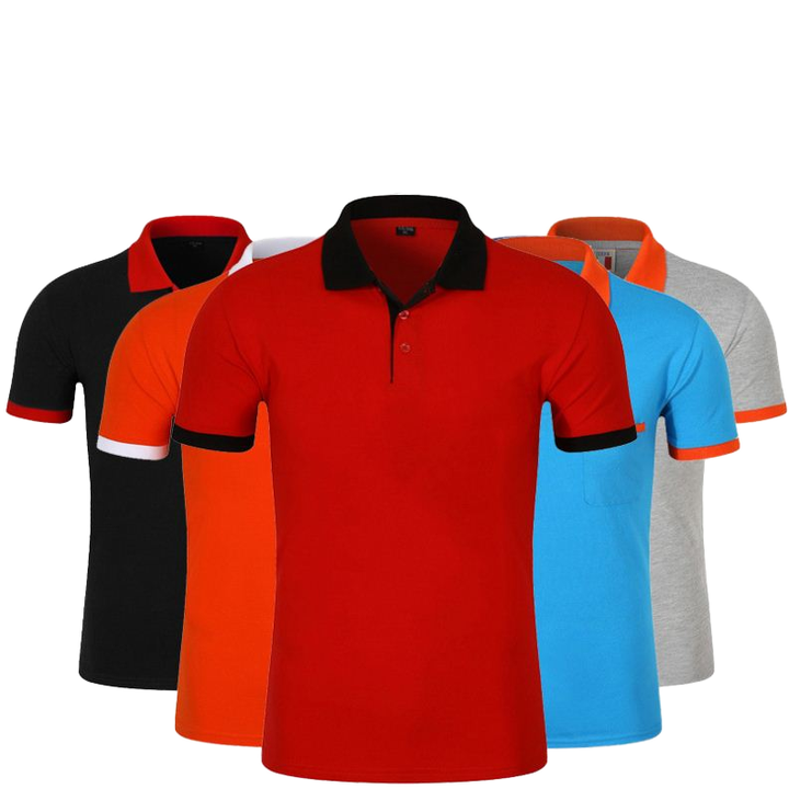 เสื้อยืดแขนสั้นสำหรับผู้ชายเสื้อสวมหัวเสื้อโปโลลำลองสีพื้นปักลาย3D ป้องกันรอยยับ
