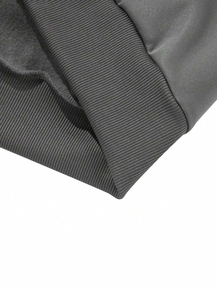 เสื้อมีฮู้ดแบบสวมหัวสีเทาสำหรับผู้ชายทรงหลวมพิมพ์โลโก้