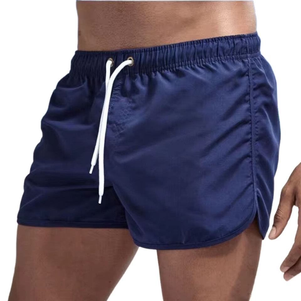 กางเกงขาสั้นลำลองสำหรับผู้ชาย แห้งเร็ว เอวยางยืด มีเชือกผูก เหมาะสำหรับใส่ว่ายน้ำ เอวกลาง กางเกงบอร์ดชอร์ต เป็นมิตรกับสิ่งแวดล้อม ป้องกันรอยยับ