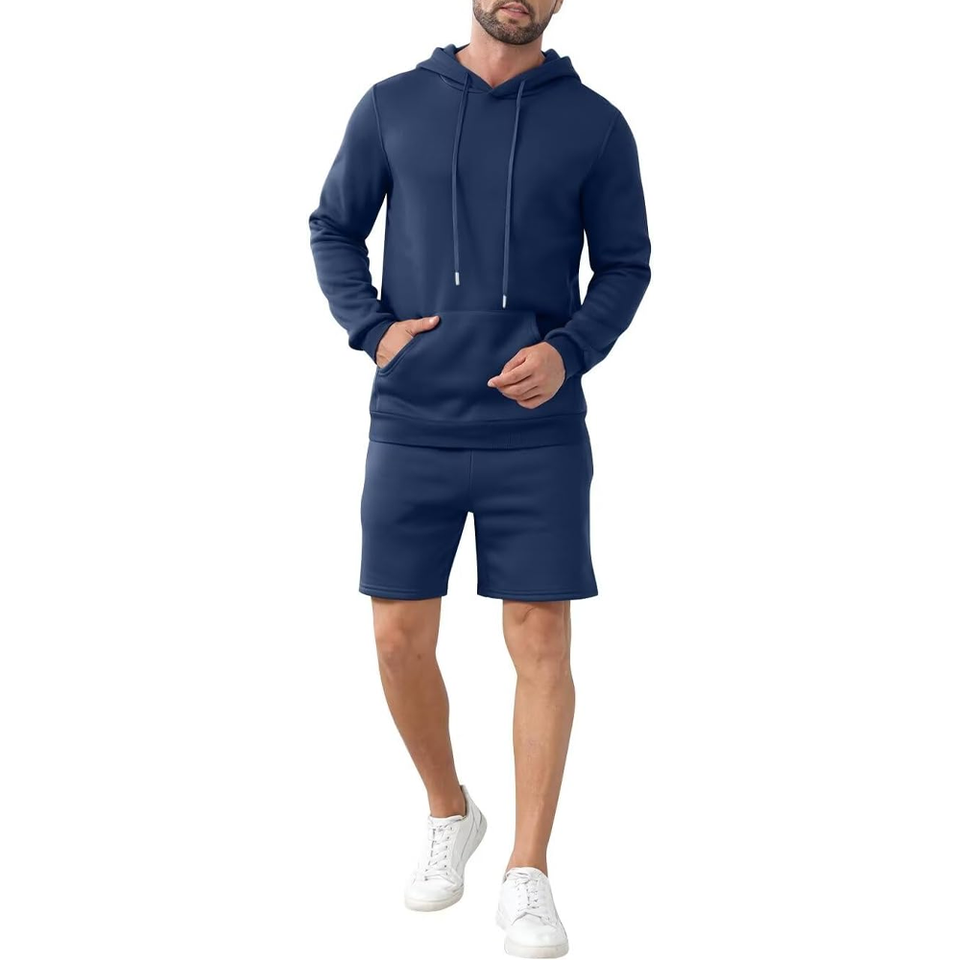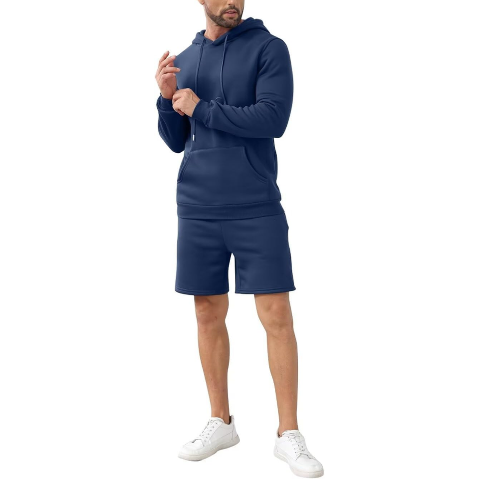 ชุดกางเกงขาสั้นมีฮู้ดกีฬาลำลองของผู้ชายชุดเสื้อแขนยาว2ชิ้นชุดกีฬาไซส์ใหญ่พิเศษ