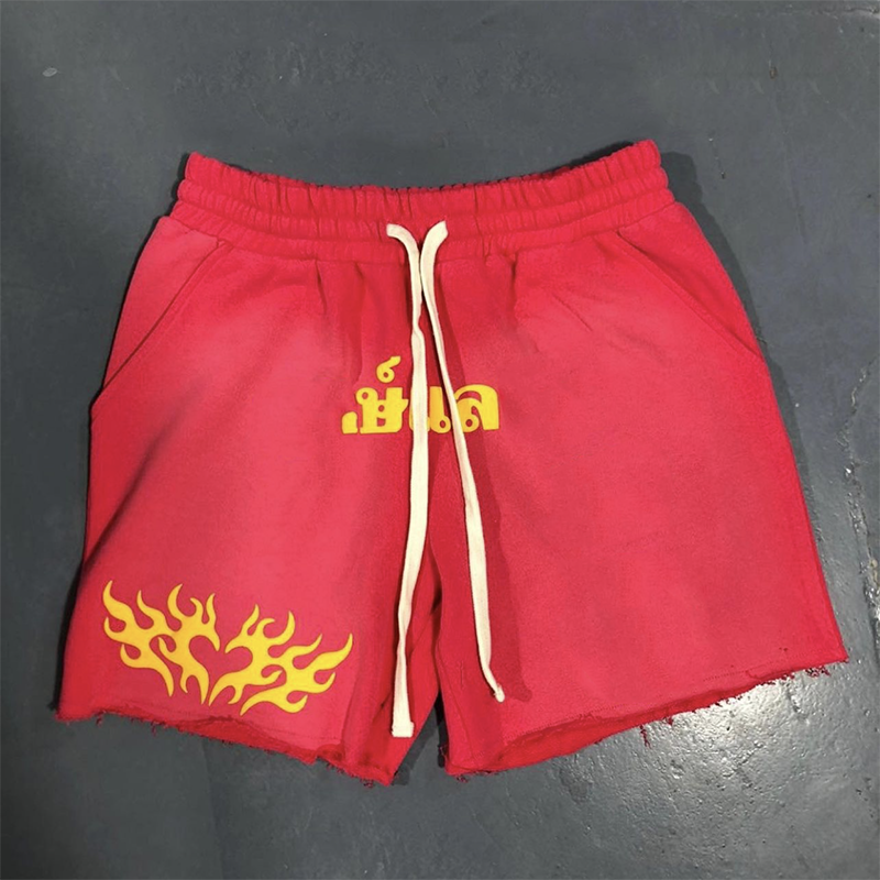 กางเกงขาสั้นกีฬาลำลองสำหรับผู้ชายผ้าคอตตอนหนาพิมพ์ลายกรดเฟรนช์เทอร์รี่สไตล์วินเทจปรับแต่งได้ตามต้องการ