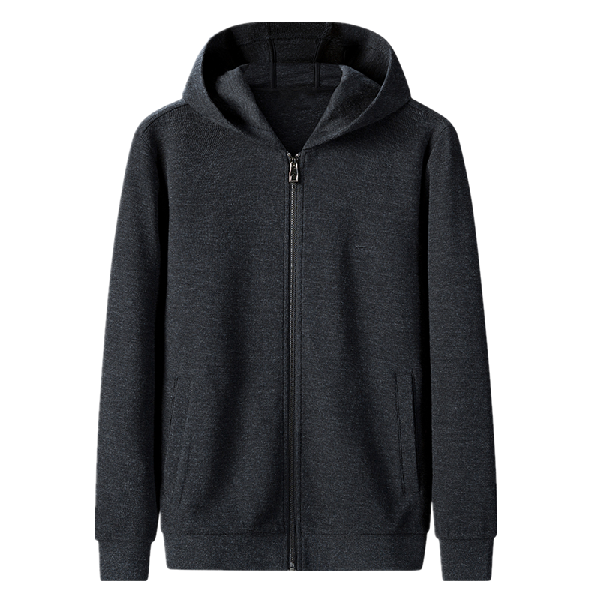 Men's Casual Sports Style Custom Zipper Hoodie with Zipper Pocket Wool Sweater Fall Solid Color Hoodie
