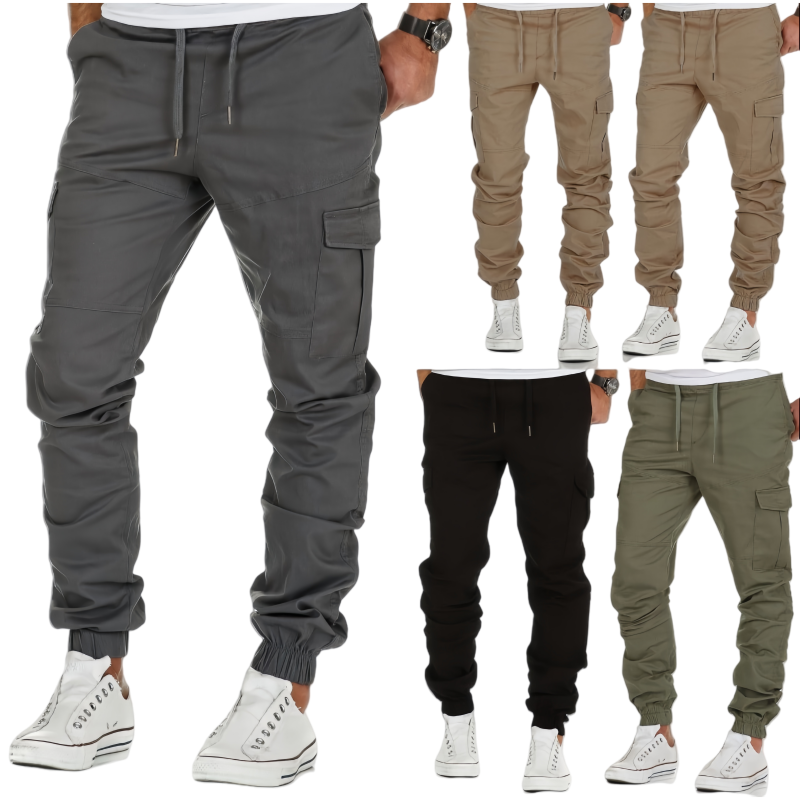 กางเกงลำลองทรงสปอร์ตสำหรับผู้ชาย ทรงเข้ารูป หลายกระเป๋า ผ้าถักโพลีเอสเตอร์/คอตตอน ปักลาย บริการ OEM กางเกงขายาว