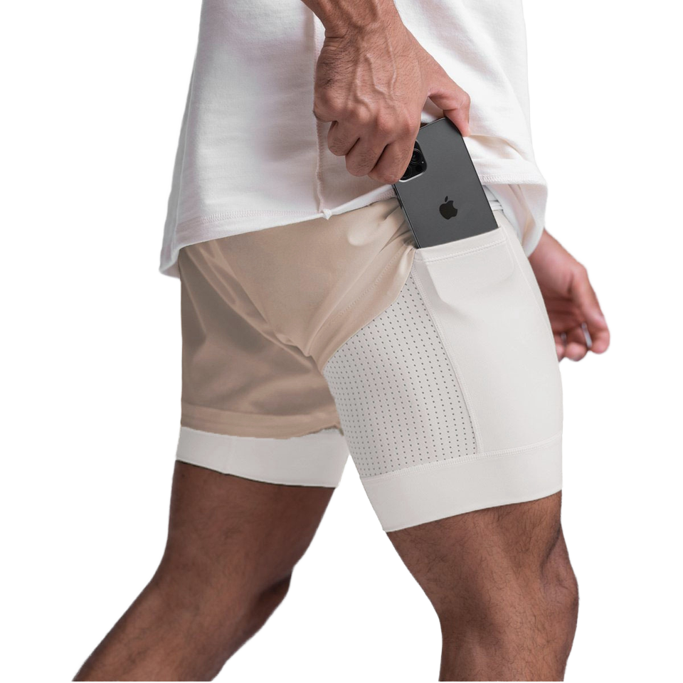 กางเกงกีฬาลำลองผู้ชายแบบ 2-in-1 แห้งเร็ว สำหรับออกกำลังกาย วิ่งจ๊อกกิ้ง ผ้าแคนวาสเนื้อแน่น โพลีเอสเตอร์ 100% เอวกลาง ทรงฟิตเนส กันยับ