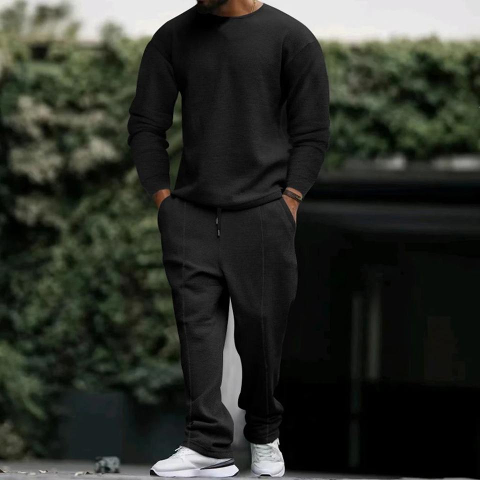 Men's Lightweight Casual Sportswear Set Hooded Jacquard Knit Top Pants Winter Plus Size Tracksuit Lapel for Adults 100% Cotton
