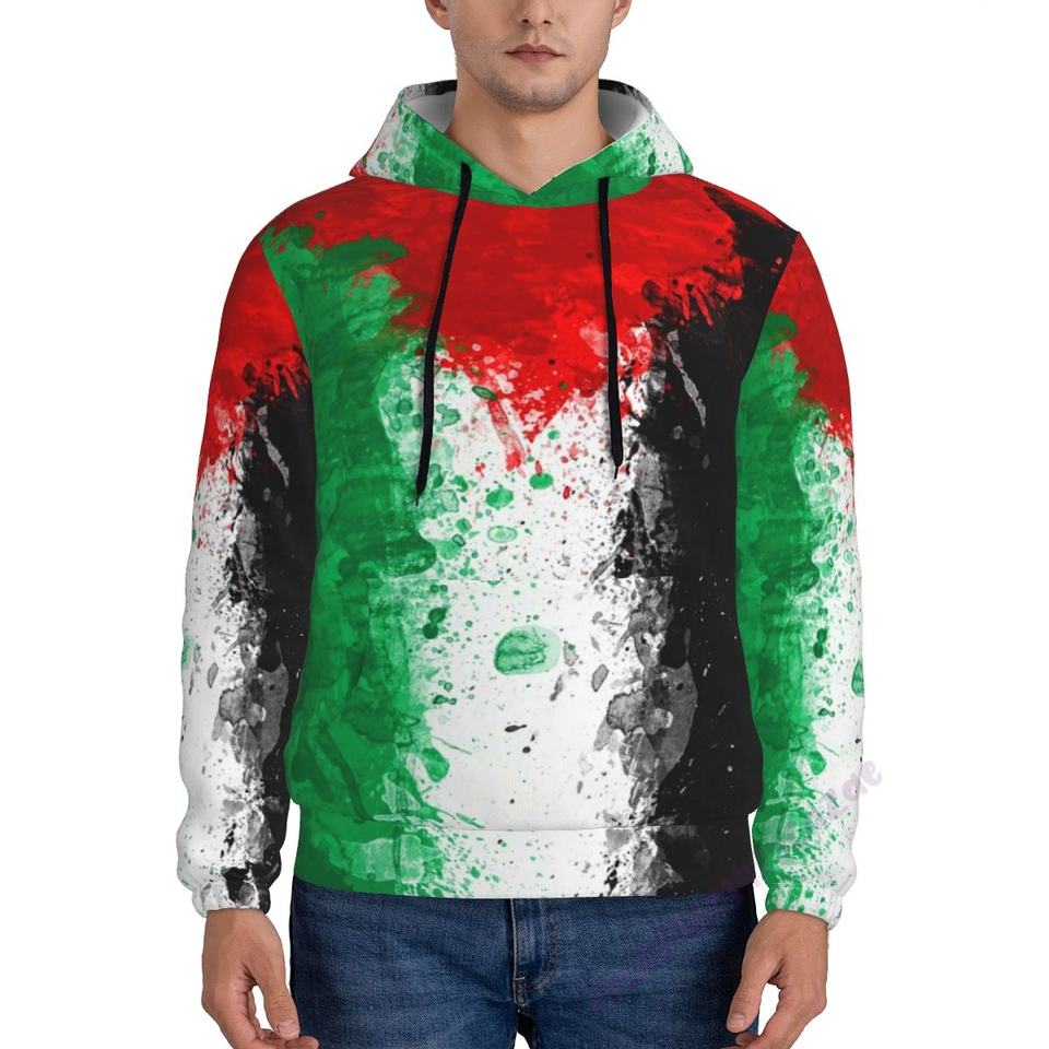เสื้อฮู้ดลำลองสำหรับผู้ชายเสื้อแบบปักลายธงชาติปาเลสไตน์มัด3D ย้อมสีล้วนสำหรับผู้ชาย