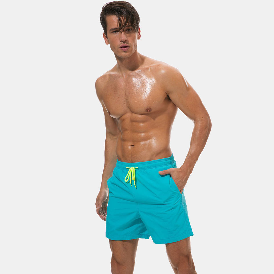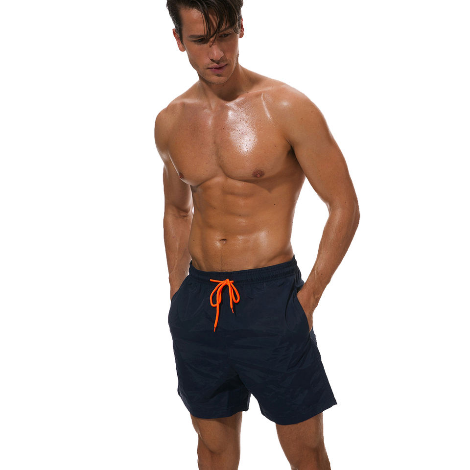กางเกงขาสั้นชายหาดแบบลำลองสำหรับผู้ชายกางเกงขาสั้นซับเหงื่อแบบสี่ทิศทางกางเกงขาสั้นยาวถึงเข่าเอวปานกลางทำจากโพลีเอสเตอร์ออกแบบได้ตามต้องการสำหรับฤดูร้อน