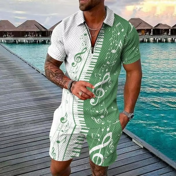 ชุดเสื้อยืดแขนสั้นและกางเกงขาสั้นผู้ชายสไตล์วินเทจลำลองสำหรับฤดูร้อน ระบายอากาศได้ดี เป็นมิตรกับสิ่งแวดล้อม ผลิตจากโพลีเอสเตอร์/ผ้าฝ้าย ขายส่ง