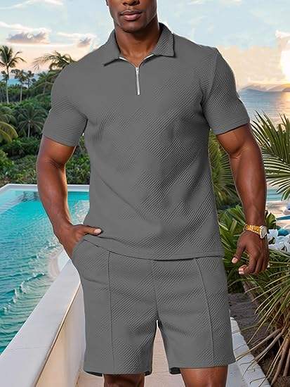ชุดกีฬาลำลองฤดูร้อนสำหรับผู้ชาย เสื้อแขนสั้นเนื้อบางแห้งเร็ว พร้อมกางเกงขาสั้นพิมพ์ลาย