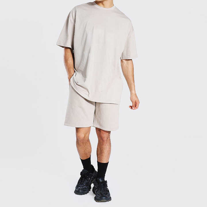 ชุดลำลองผู้ชายสไตล์สตรีทสำหรับฤดูร้อน ชุด 2 ชิ้น กางเกงขาสั้นเอวยางยืดและเสื้อยืดสำหรับใส่หน้าร้อน บริการ OEM คุณภาพพรีเมียม