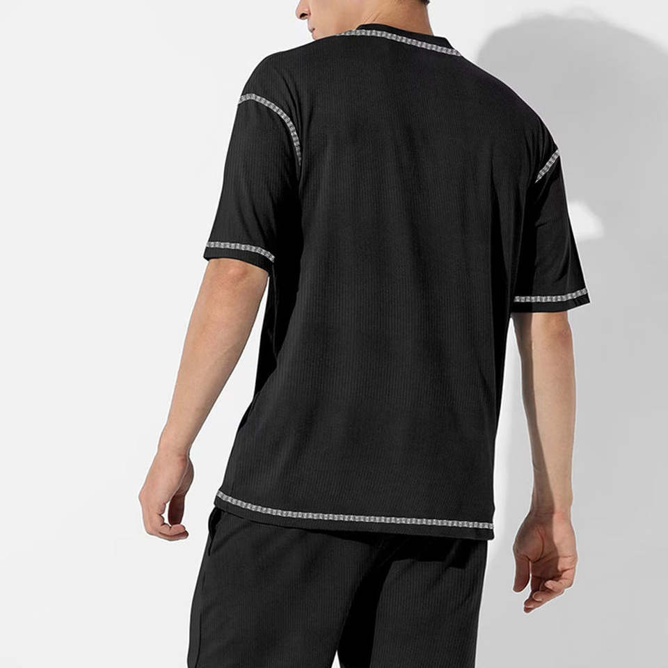 ชุดกางเกงขาสั้นสำหรับผู้ชายแบบลำลองฤดูร้อนสินค้ามาใหม่เสื้อยืดแขนสั้นพิมพ์ลายสีตัดกัน