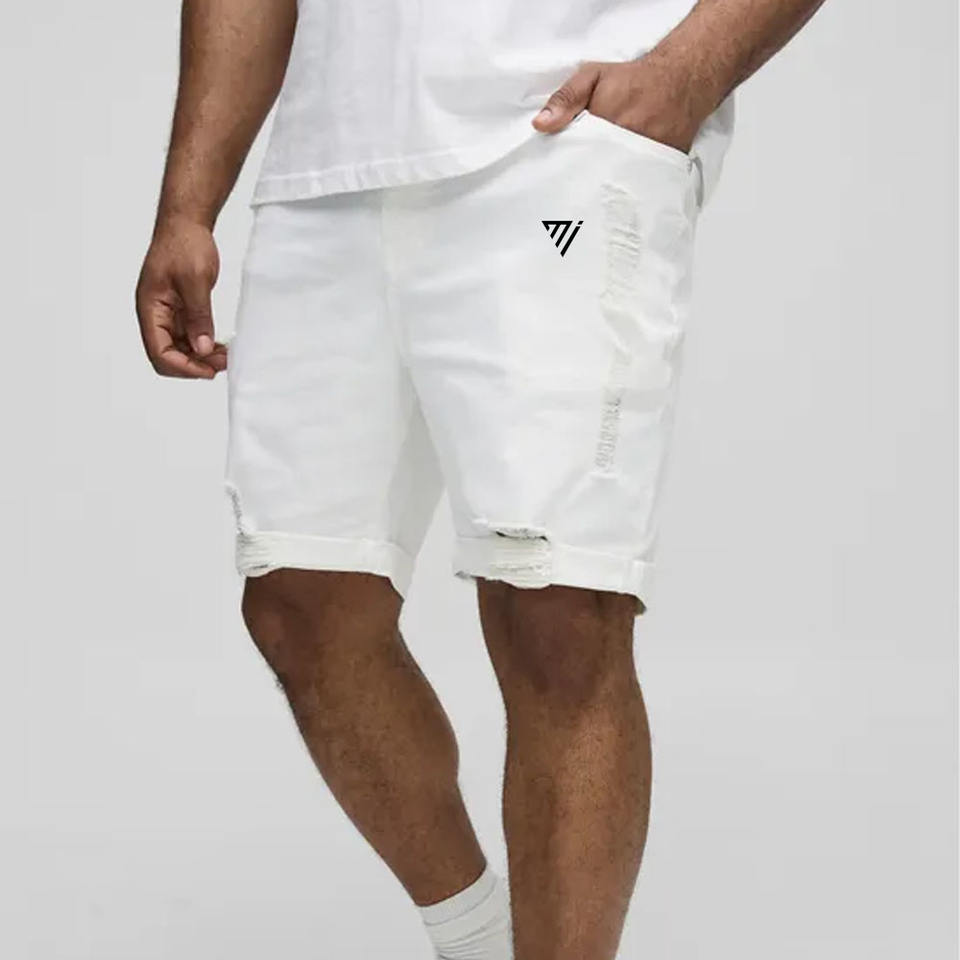 กางเกงสกินนี่สีขาวสำหรับผู้ชายกางเกงเข้ารูปกลางซีดแบบตรงมีกระเป๋าผ้าปะต่อ