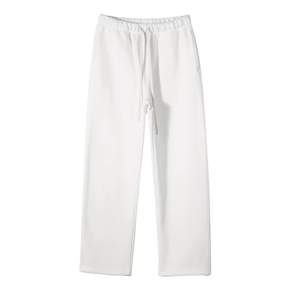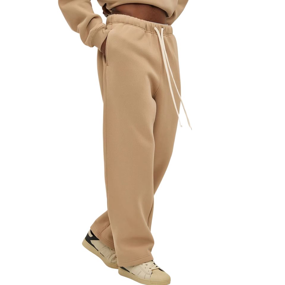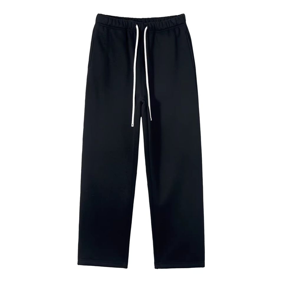 กางเกงลำลองขายาวสำหรับผู้ชายกางเกงกีฬาฤดูหนาวผ้าฟลีซสีล้วนเอวยางยืดปิดขากลางตรงย้อมสีเรียบสำหรับฤดูใบไม้ร่วง