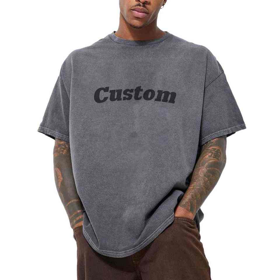 เสื้อยืดลำลองผู้ชายผ้าฝ้าย100% สีทึบลายตัวอักษรทรงหลวมพอดีกับหน้าจอไหมน้ำหนัก280กรัม250gsm ถ้อยคำ t/t