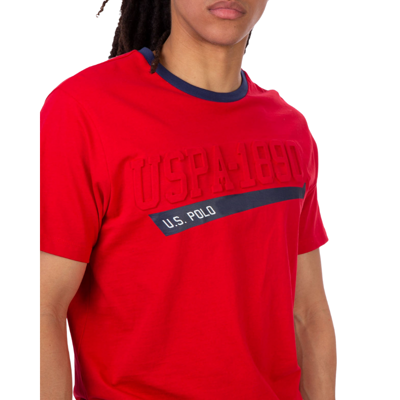 เสื้อยืดลำลองของผู้ชาย,เสื้อยืดคอกลมทรงหลวมขนาดใหญ่พิเศษพิมพ์ลายนูนโลโก้สีตัดกัน