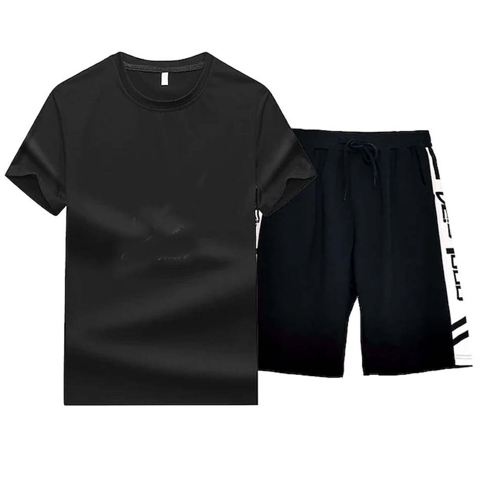 ชุดลำลองผู้ชายแฟชั่นฤดูใบไม้ร่วง เสื้อยืดแขนสั้นผ้าโพลีเอสเตอร์/คอตตอน กางเกงขาสั้น ชุด 2 ชิ้น น้ำหนักเบา