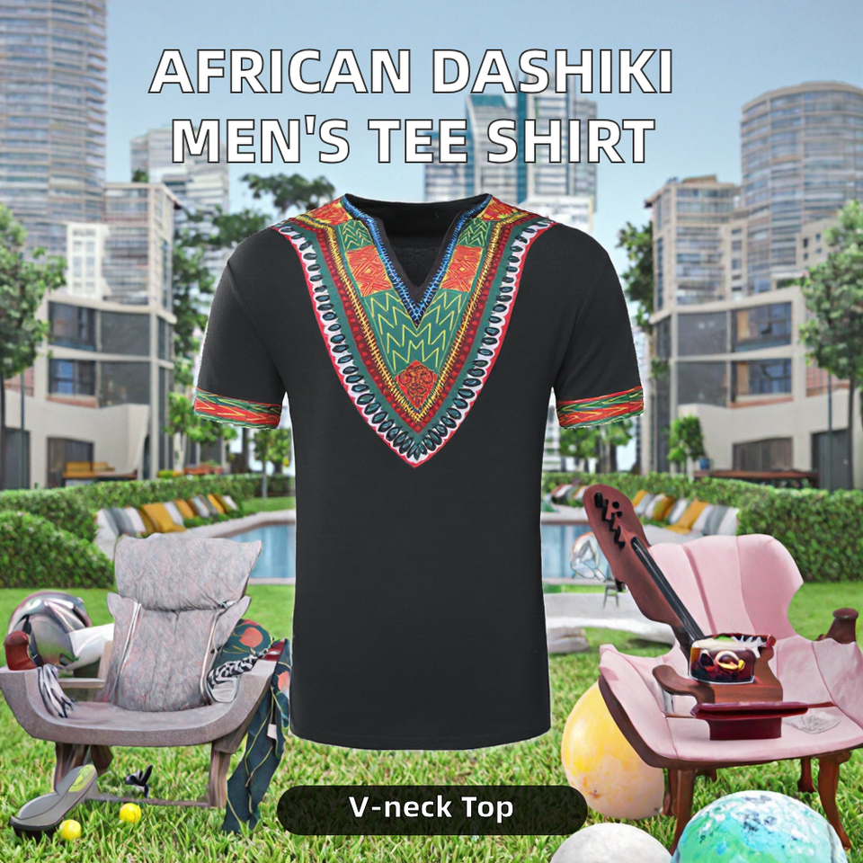 เสื้อผ้าผู้ชายลำลอง คอวี แขนสั้น ผ้าถักโครเชต์ ลายดาชิกิ แฟชั่น ระบายอากาศได้ดี ทรงปกติ แบรนด์ดัง ลายเลเซอร์