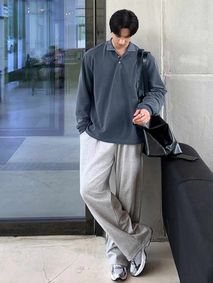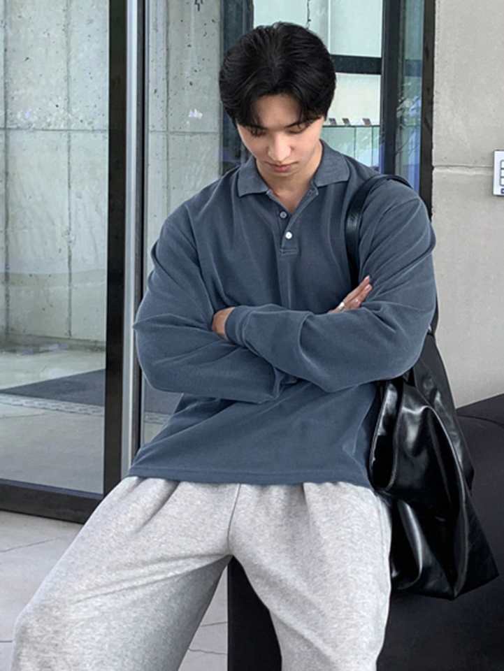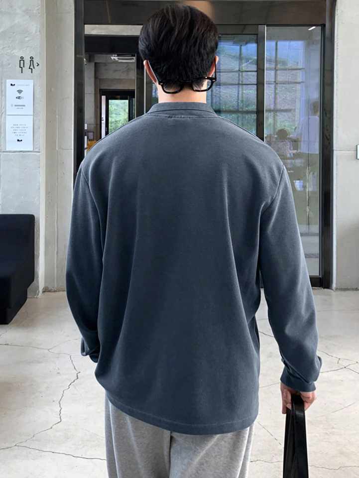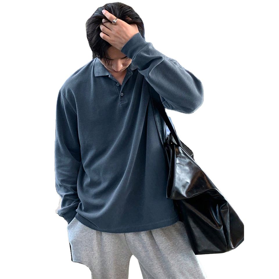 เสื้อโปโลแขนยาวสีน้ำเงินอเนกประสงค์ลำลองสำหรับบุรุษ ฤดูใบไม้ผลิ