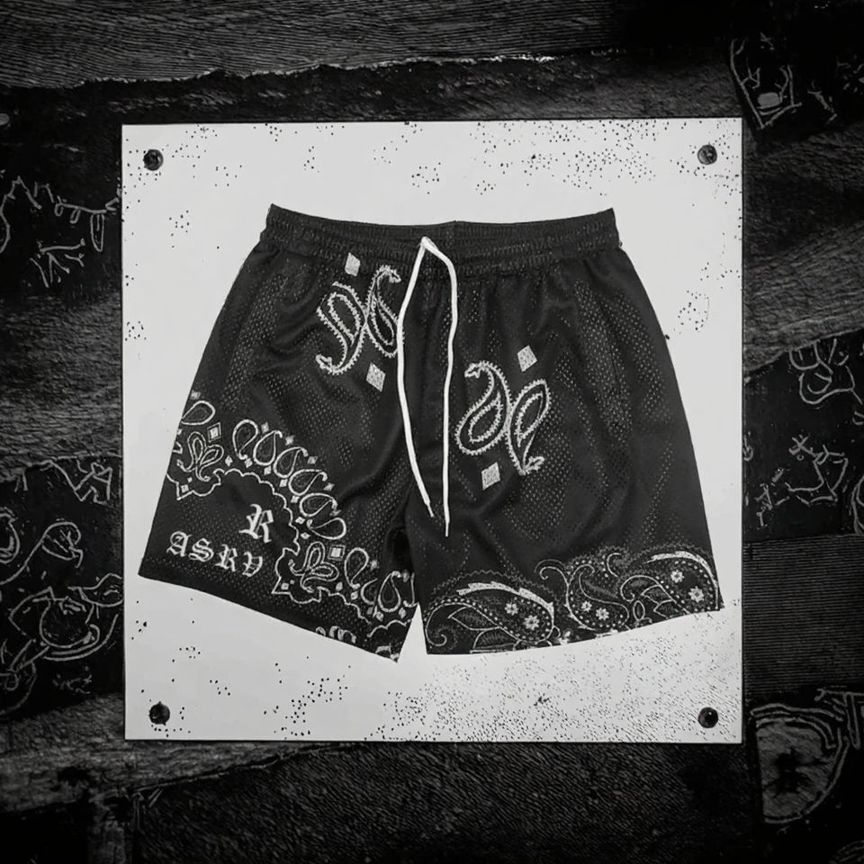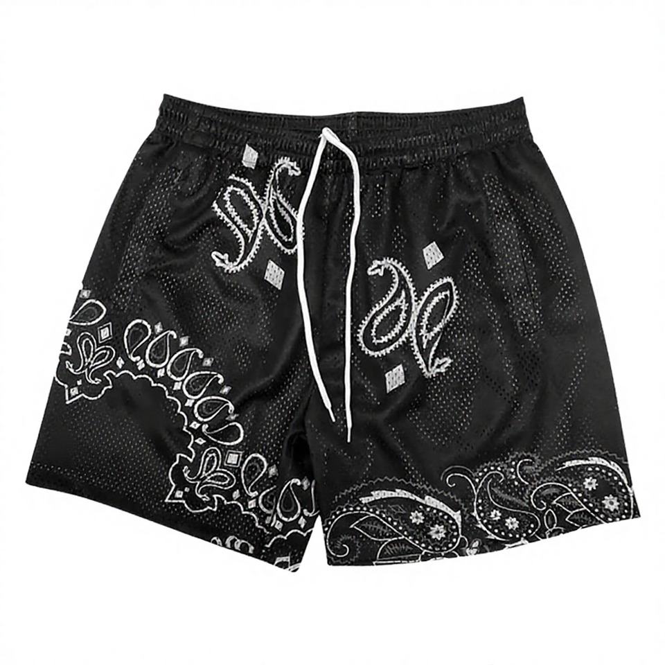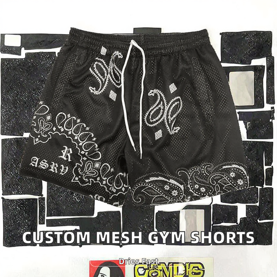 กางเกงขาสั้นผู้ชายสไตล์วินเทจเอวยางยืดผ้าถักตาข่าย รับสกรีนโลโก้ แห้งเร็ว ระบายอากาศได้ดี ผลิตจากโพลีเอสเตอร์ 100% เหมาะสำหรับเล่นบาสเก็ตบอล ออกกำลังกายที่ยิม
