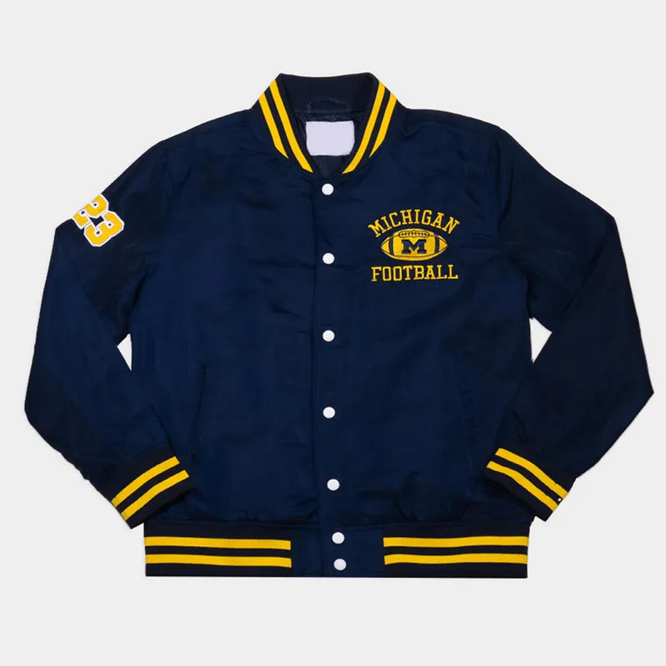 เสื้อแจ็คเก็ตบอมเบอร์ผู้ชายสไตล์วินเทจลำลองสำหรับฤดูหนาว ผ้าซาติน โพลีเอสเตอร์ ติดกระดุม ปักลาย แนวสปอร์ต วาร์ซิตี้ เป็นมิตรกับสิ่งแวดล้อม