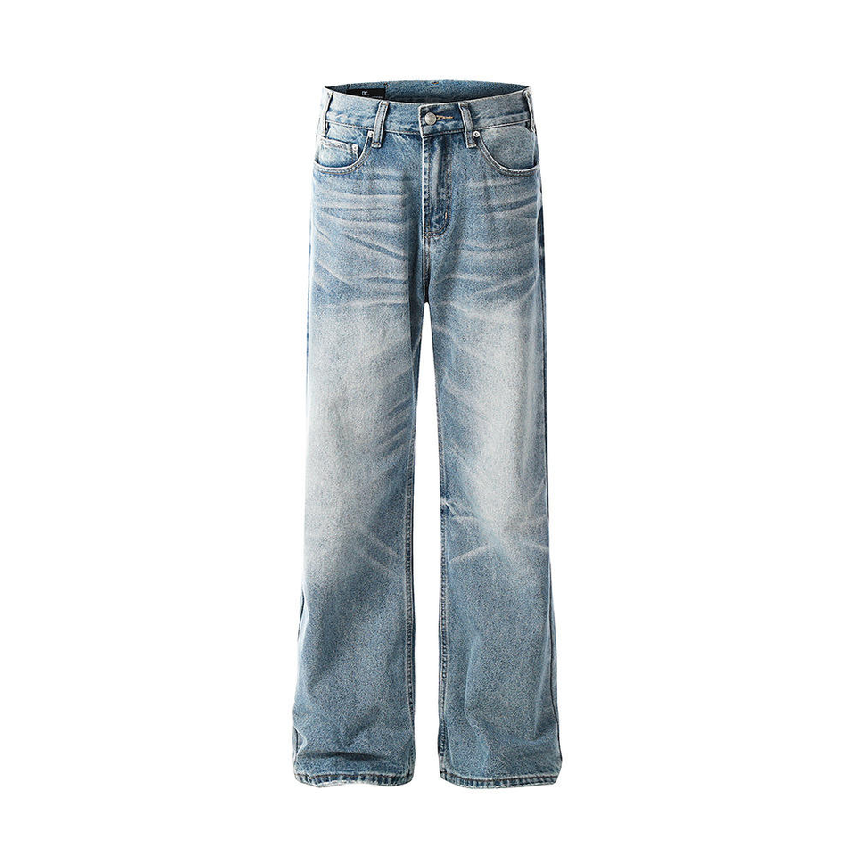 Men's Casual Wide Leg Machete Washed Straight Jeans Men Mid Denim Baggy Jeans for Men