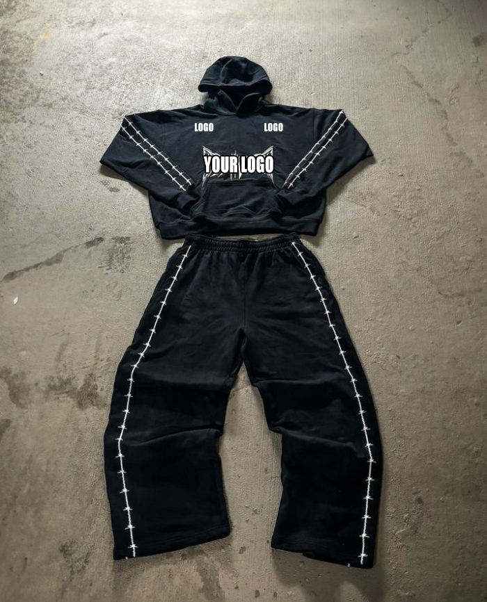 Men's Casual Winter Breathable Plus Size Sweat Suit Set Acid Wash Baggy Tracksuit with Embroidered Logo Hoodie and Pants