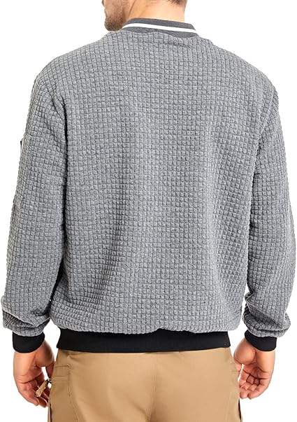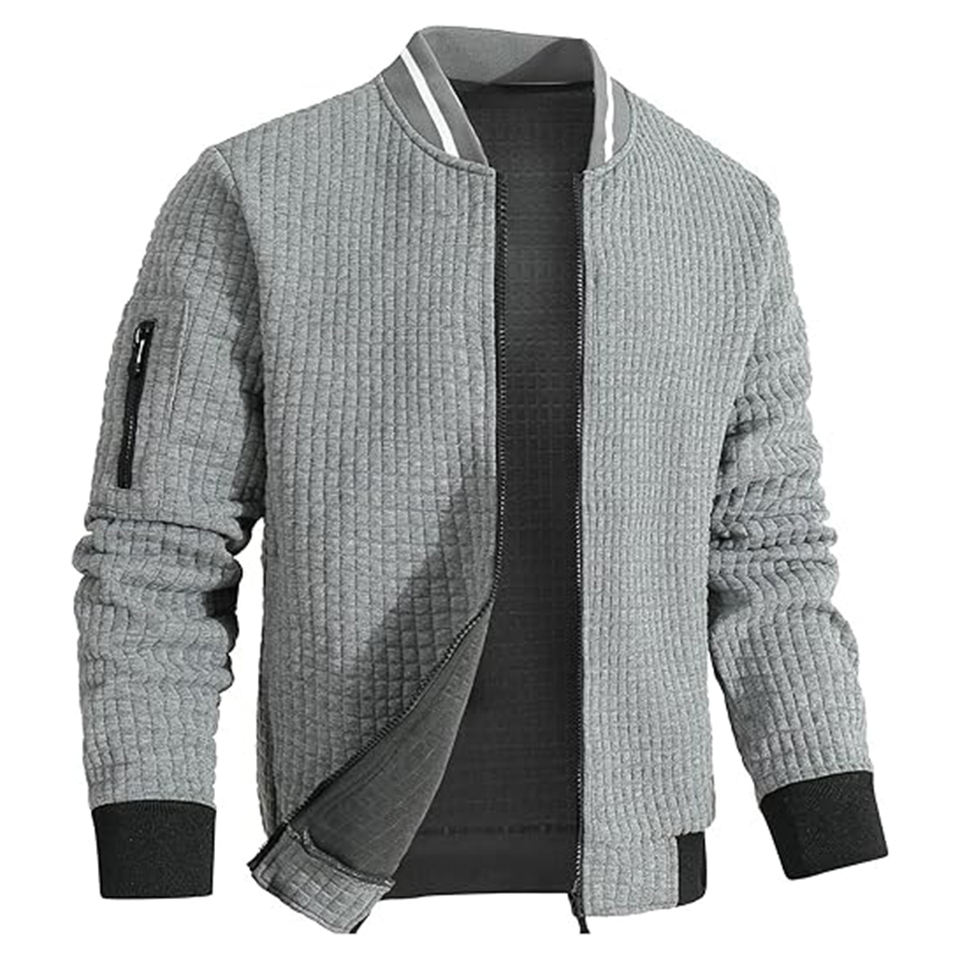 เสื้อแจ็กเก็ตบอมเบอร์แบบลำลองสำหรับผู้ชายผ้าแคนวาสสีเทาแบบมีซิปด้านหน้ามีกระเป๋าด้านข้างปรับความสบายได้สำหรับฤดูหนาว