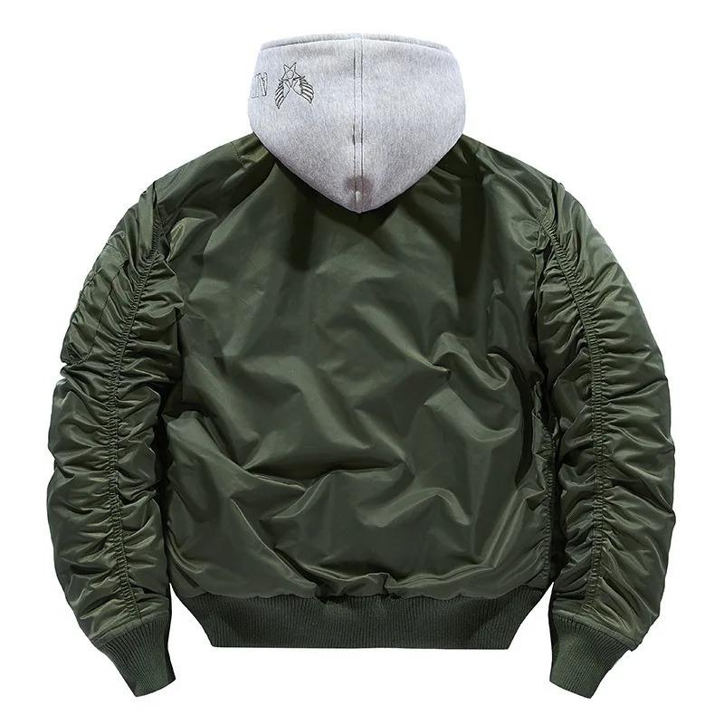 แจ็กเก็ตนักบินสำหรับผู้ชาย, เสื้อแจ็กเก็ตกันหนาวแบบลำลองมีฮู้ดถอดออกได้เสื้อเบสบอลหนาสไตล์สั้นเสื้อโค้ทยืนคอปกสีพื้น