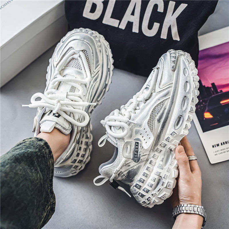 รองเท้าผ้าใบลำลองสำหรับผู้ชายใส่เดินในฤดูหนาว พื้นรองเท้าหนาบุตาข่าย สไตล์ Dad Shoes สำหรับนักเรียน