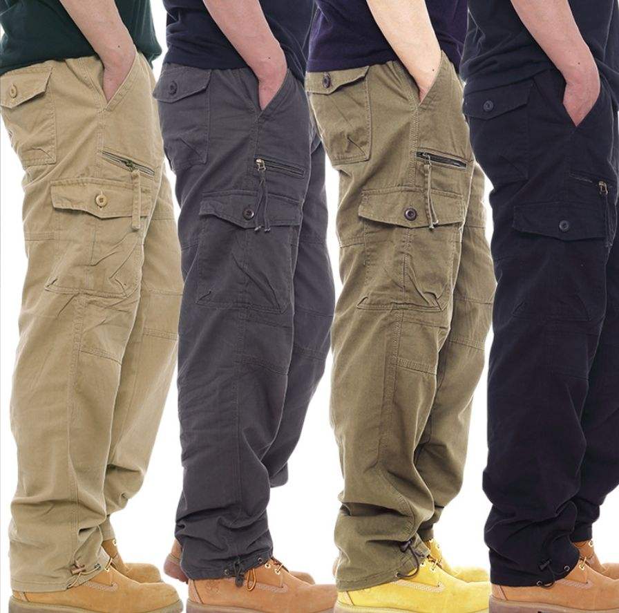 กางเกงคาร์โก้ลำลองผู้ชาย ไซส์ใหญ่ ผ้าฝ้าย เอวยางยืด หลายกระเป๋า ทรงตรง ใส่สบาย น้ำหนักเบา เป็นมิตรกับสิ่งแวดล้อม